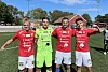 Søgnes keeper Jon Finsådal-Kristensen holdt nullen, her sammen med Søgnes målscorere, fra venstre: Håkon W. Fjeld, Morten Dalene og Jens Drange Karlsen