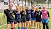 Flere nye spillere i troppen var på plass under onsdagens trening. Fra venstre: Ida Myklebust (fra Torden), Karoline Madsen (J15), Ella Holmesland (hospitant fra J17), Tyri Snaprud (J17), Emma Bay-Thorsland (J17), Lynnea Paulsen (fra Vigør) og Emmy Alette Holte Stea (fra Vigør).