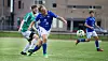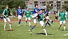 Spillende trener Morten Dalene ga ordre om «pumping» av ball inn mot 16-meteren. Her er en av de få han fikk, dessverre uten resultat. (Foto: Nicolai Prebensen).