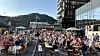 Lørdag formiddag var Sentrumsveien forbi Tangvall Arena stengt for trafikk, og rigging av festivalområde før kveldens Allsang på Tangvall var allerede godt i gang.