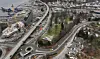 esterveibroa (lavbroa) ligger mellom Vesterbroa (høybroa) til venstre og Kristiansand kirkegård til høyre i bildet.