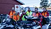 Hjelpekorpset i Søgne Røde Kors er første i landet med å ta i bruk elektrisk snøskuter og har mottatt pioner- og miljøstøtte fra Norges Røde Kors for utprøvingen. Her er vaktlaget fra starten av vinterferien 2025 avbildet. Fra venstre: Christoffer Eidstø, Pål Andersen, Arja Taraldsen, Tom Erik Dønnestad, Tor Magne Thorsen og Kim-Morten Molland.