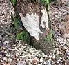Samtidig ser det ut til at flommen ikke har skremt beveren. Flere steder og over en lengre strekning kan en finne ferske gnagemerker etter bevere som har prøvd seg på både store og mindre trær. Det vedlagte bildet viser at denne beveren har operert høyt over ordinær vannstand.