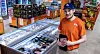 Butikksjef Jakob Rogstad på Billy Søgne med disker fylt med varer fra Ferdinands.