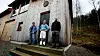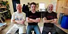 Andreas Mølland, Ivar Åsland og Odd Jørgensen er de kreative sjelene bak krabbekloa på Høllesanden. her er de på atelieret på Nepstadmyra i Songdalen kommune. (Foto: Nicolai Prebensen)