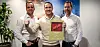 Meglerne Kristoffer Munksgaard, Kristoffer Lauvsland og Jon Andreas Røsstad fra Eiendomsmegler Norge med synlig bevis for at Søgne er best i Norge.