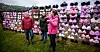 Siden oppstarten i 2018 har «utstillingen» vokst, og i år har de tre ivrige damene doblet høyden på montasjen som nå består av tett på 200 plagg hvor de rosafargede er rammet inn av sorte BHer.