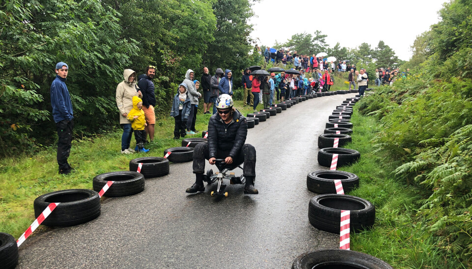 Han ble nummer tre i Olabil-løpet som Flekkerøy Vel arrangerte på Høyfjellet søndag. Rundt 200 publikummere møtte opp i duskregnet, og de fikk se elleve olabiler i forskjellige artige varianter sette utfor fra den gamle befalsmessa og bakken ned.