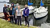 Blant årets deltakere, fra venstre: Aleksander Mellingen, Sebastian Skogsfjord Nomedal, Svein Mathias Repstad, Willy Repstad Onarheim (bak), Mandius Stusvik Ellingsæther, Emilie Bauthus Høgheim og Nathalie Tarita Hansen. Her foran de to seilbåtene til speideren som ble benyttet i helgen.