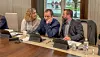Tom Jørgensen (t.h.) omtaler de manglende lønnsutbetalingene i kommunen som en krise. Under formannskapsmøtet tordnet han mot lønningssjefene. Bildet er fra et tidligere møte, der han er i samtale med KrFs Sigrun Sæther og Atle Aasen.