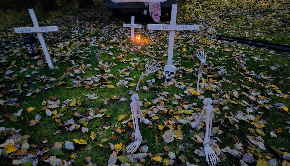 – Jeg har invitert venner og bekjente med barn til å komme å se «pynten» slik at de ikke blir skremt. Her er blant flere effekter en «kirkegård» hvor skjeletter stikker opp fra «gravene». Gresskar er fylt opp med rød væske og hele «pynten» er lyst opp led LED-lys og fakler, sier Sandnes videre.