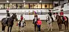Selma, Martine, Ada, Adine og Lykke koste seg på rideleir onsdag sammen med Elina som holder hesten.