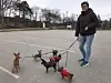 Hilde Hildrastrand ferier påske på Flekkerøy. Hun kommer fra Aalesund-traktene, og med seg på ferien måtte hun selvfølgelig ha sine seks søte små valper. Fem av de er russiske Roy-terrier, mens den i rødt er en Prosky krysarik. Foto: Arild Hansen