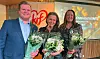 Toppkandidatene ble takket med blomster og hilsen fra sentralstyremedlem Per Sverre Kvinlaug - en hilsen som motiverte alle i salen, til og med han selv, som han sa.