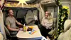 Tuva Franche på besøk i bobilen til Øystein Aamodt og Chris Thomas Johansen under opptakene til Lydbølgens julekalender. (Foto: Chris Thomas Johansen/skjermdump)
