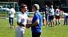 Forsoning. Bildet er fra lokaloppgjøret mellom Søgne FK og Høllen FK høsten 2013. Da var Bjørn Vidar Gundersen trener for Høllen. Odd Arild Skonhoft er trener for Søgne FKs A-lag. (Foto: Arkiv, Nicolai Prebensen)