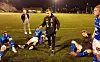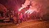 Bildet under: Pyroeffekter hører med når det spilles opprykksfinale. (Foto: Frank Solås).