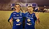Målscorerne Christian Heiberg Olsen t.v. og Sondre Veel jubler for seier i første opprykkskamp. (Foto: Frank Solås)