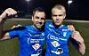 Midtstopperne Morten Dalene og Jens T. Jærnes etter en strålende kamp mot Lyngdal mandag kveld. (Foto: Frank Solås)