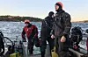 Dykkerne Jan Kristoffersen, Glenn Ivar Tønnessen og Karl Klungland under ryddeaksjonen torsdag formiddag. (Foto: Geir Smebøle/Søgne Dykkerklubb)